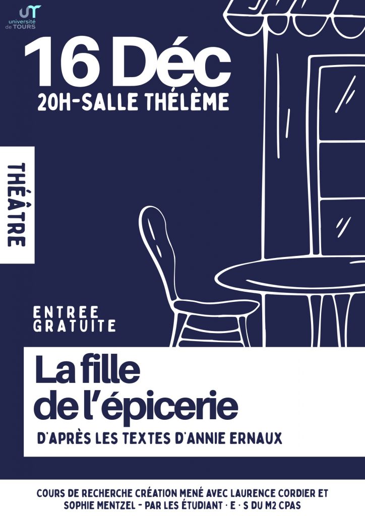 La promotion de M2 Création de Projets Culturels en Arts Du Spectacle a le plaisir de vous inviter mardi 16 décembre prochain à 20h en salle Thélème, restitution du cours de recherche-création théâtre animé par Sophie Mentzel, […]